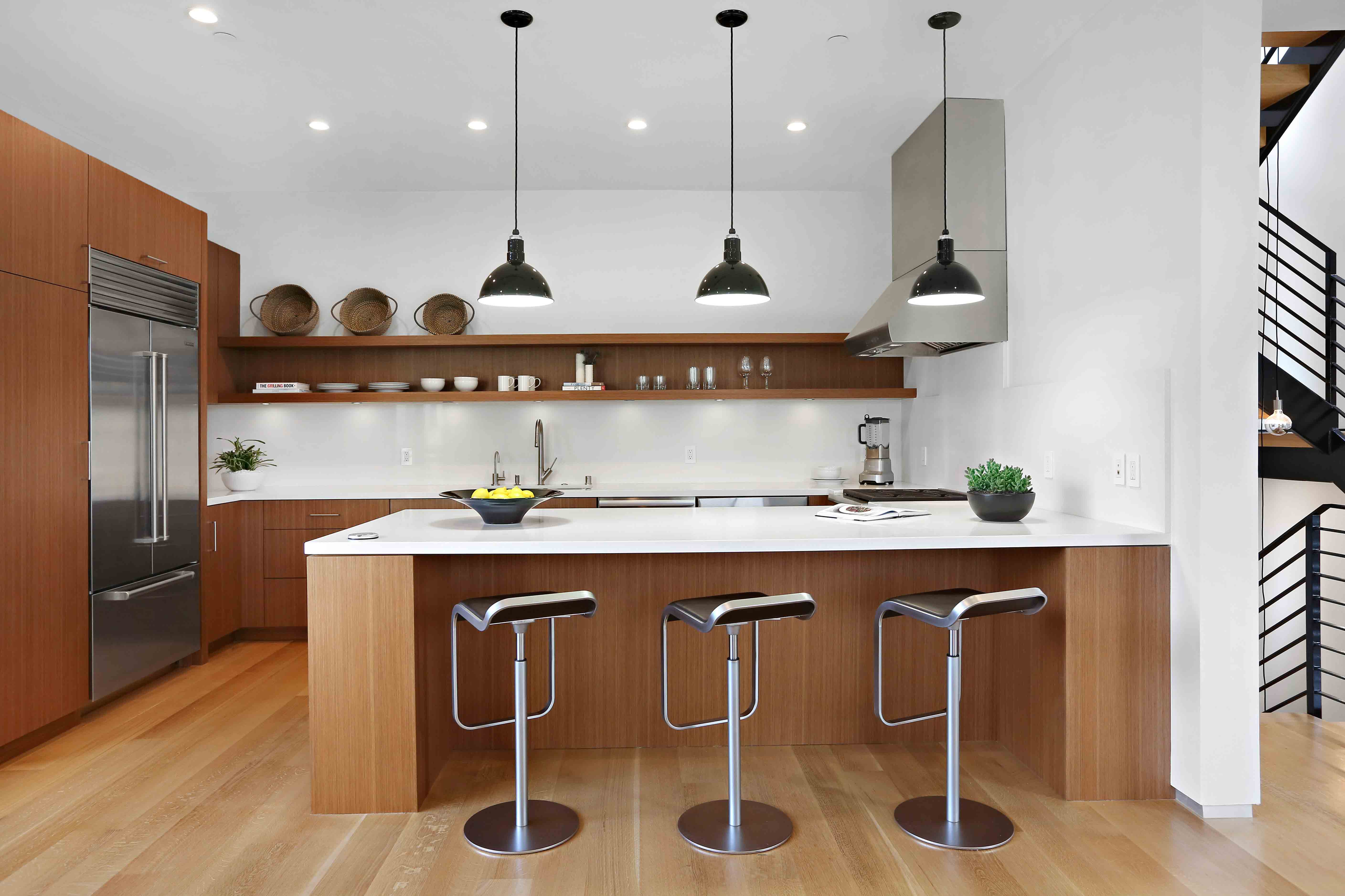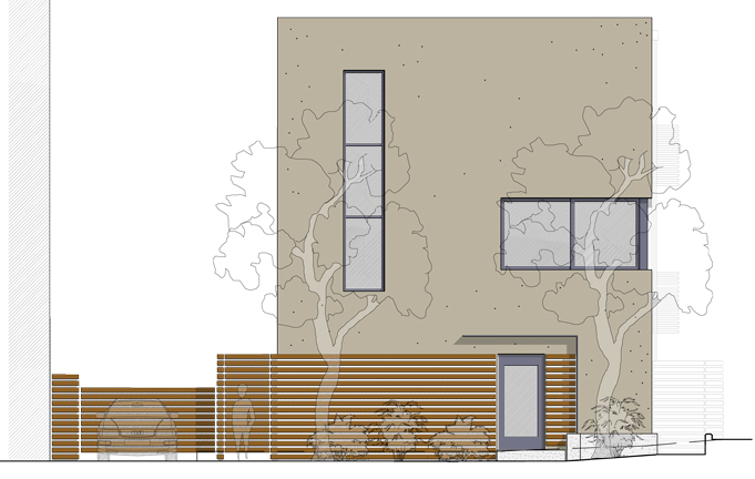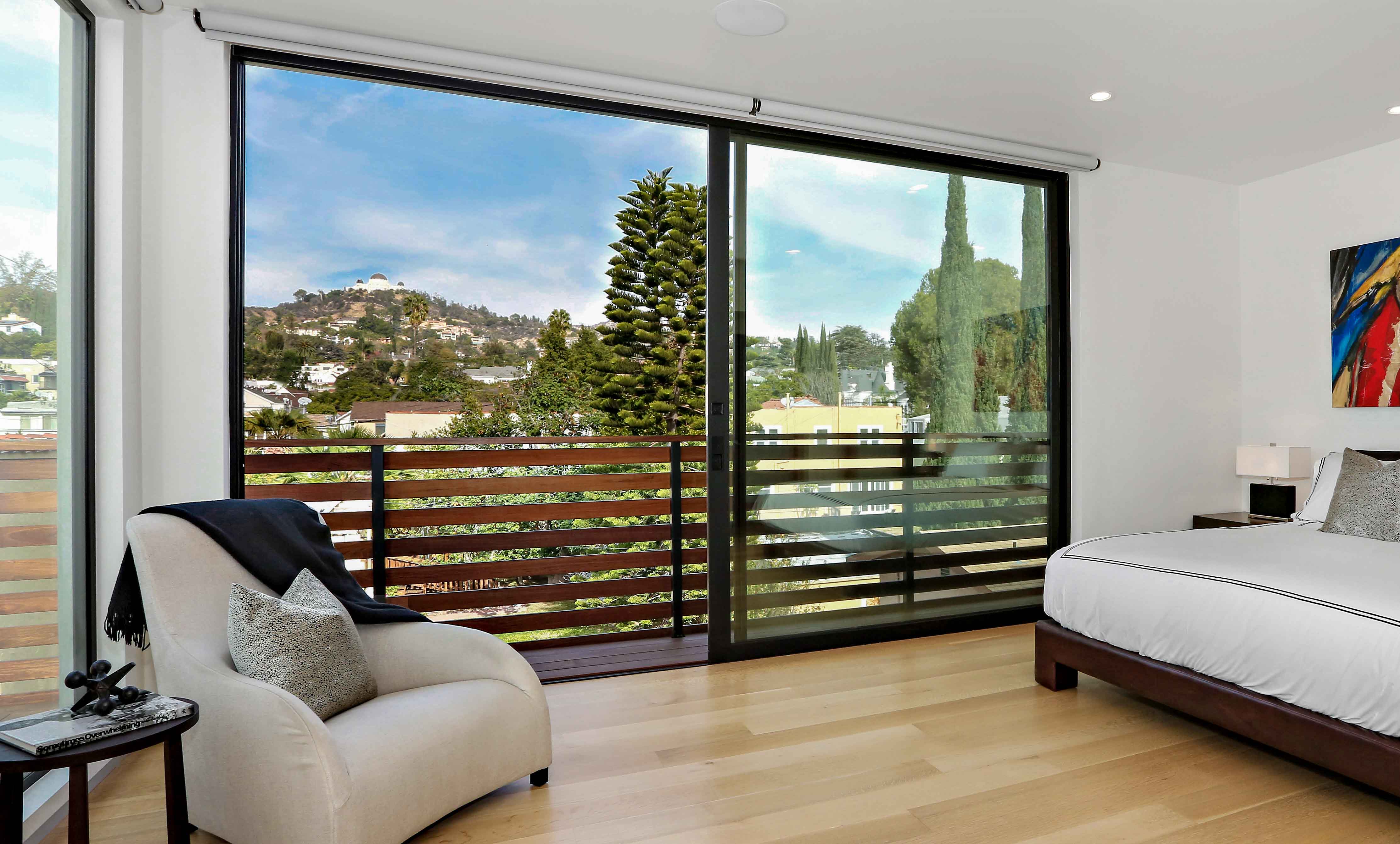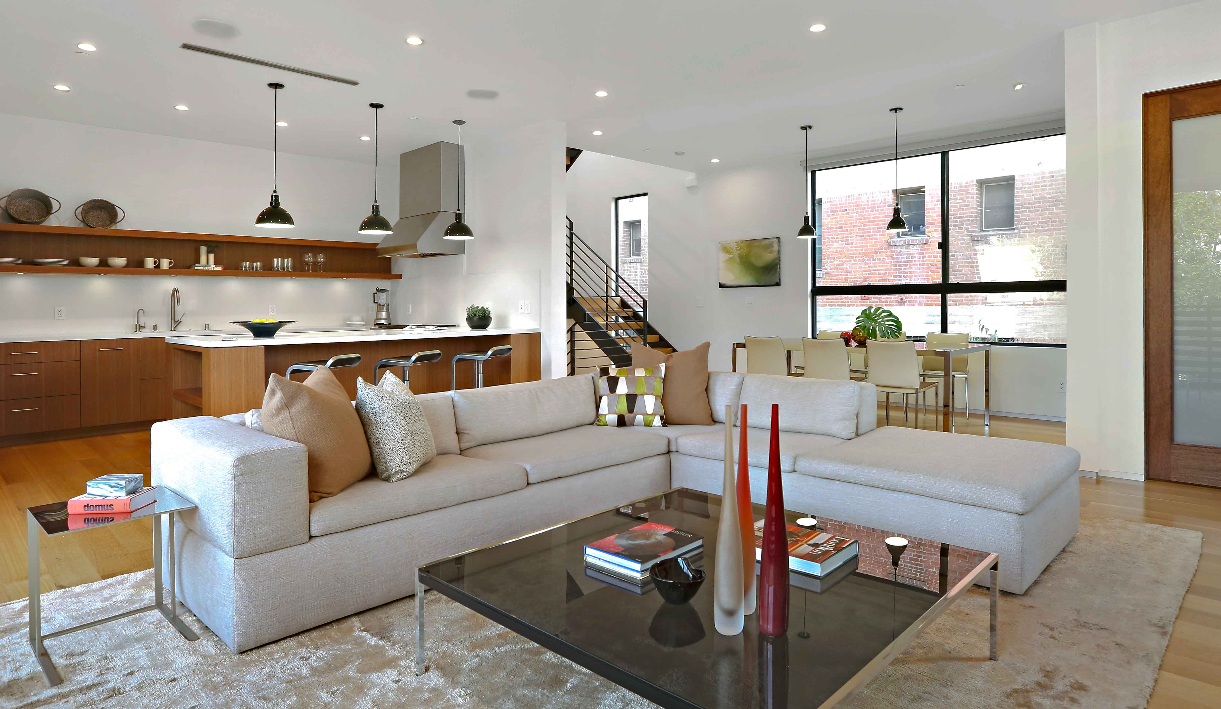 4 Townhomes, vetically split: 3 stories, 1900 sf, 2 car garage, Good views of Griffith Observatory. High Ceilings. The success of this project is a spacious modern livable feeling, even though on compact lots. This is due to a optimizing the lot configuration, use of the adjacent historic 4-story brick wall, careful consideration of views, and dramatic sense of verticality given by the windowed 3-story staircase. Quality finishes, a well thought through floorplan, and nice site work bring the project from a renter's quality aesthetic to owner's quality aesthetic. The careful and comprehensive construction detailing by the architect may not be noticed directly by the end-user, but rather the sense of simple modern elegance will be felt.