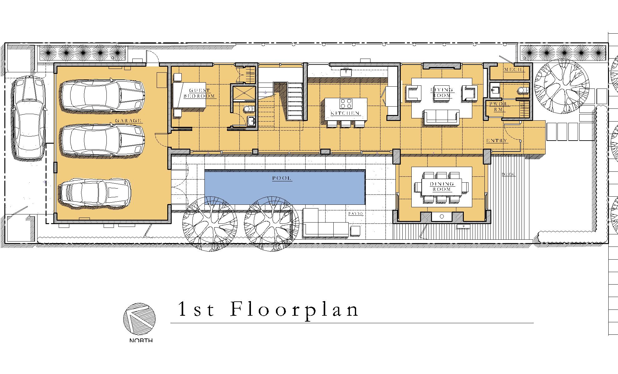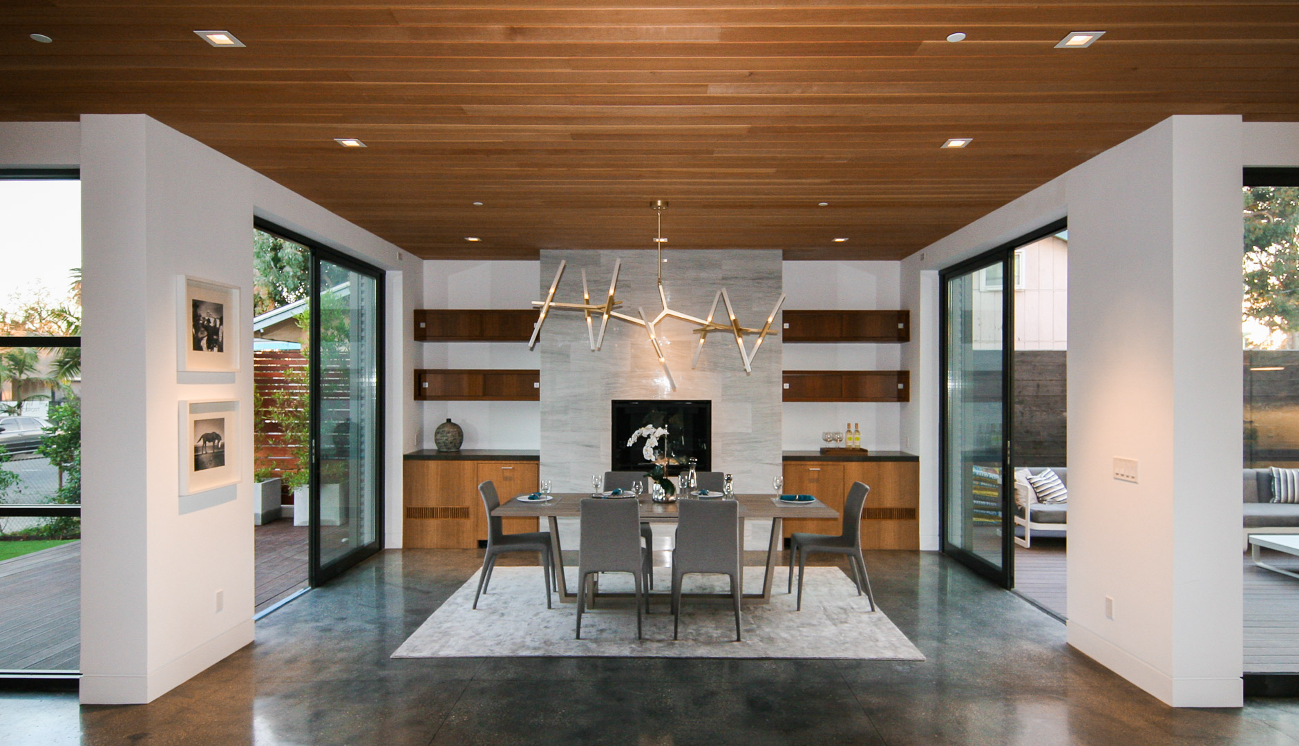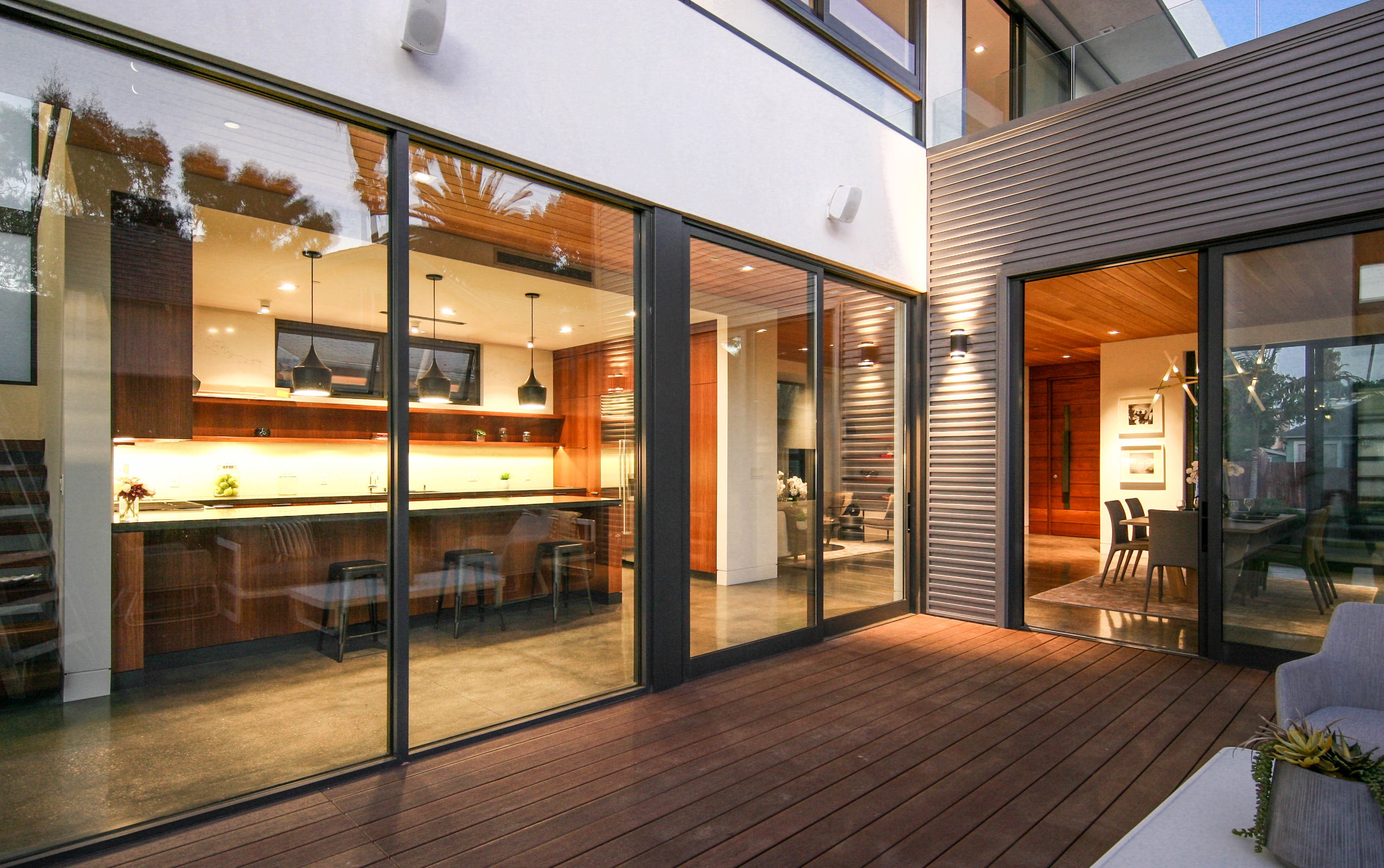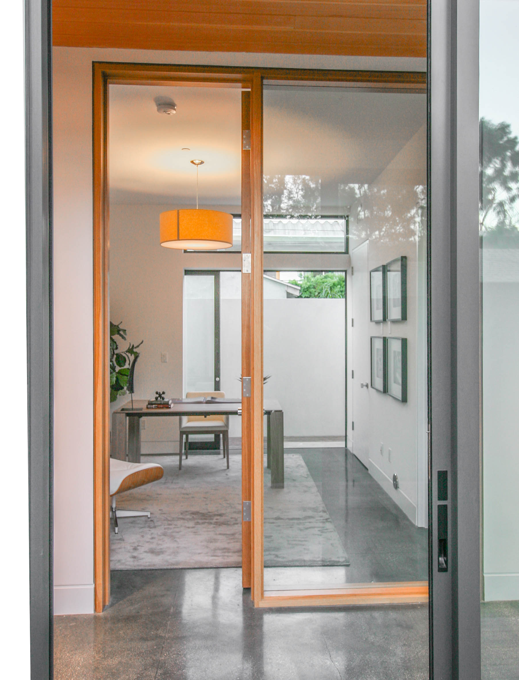 Single Family home in Venice. 3,500 square feet. Expansive glass and high ceilings. Master Bedroom with large walk-in closet, a 2nd floor Bedroom suite, a Guest bedroom at ground level, plus a central 2nd floor office/family room. A special indoor-outdoor dining room with a fireplace. 32'-0" solar-heated Lap Pool. 2nd floor exterior sunny deck. Includes a 3-car garage, or 2-car garage with studio space opening to pool area. 6kW Solar Electric system with vehicle charger. Solar Thermal in-floor heat, plus forced air heat. Conforms to the stringent California codes for low-VOC materials, Energy Efficiency, and Water efficiency.